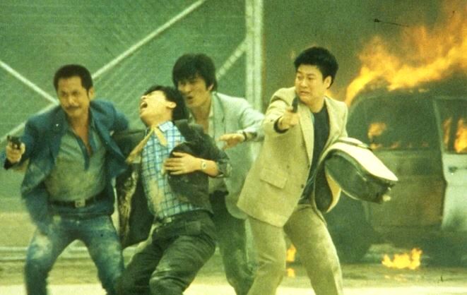 和《似水流年》同年上映的《省港旗兵》則描繪了一群偷渡到香港的內(nèi)地移民。被稱(chēng)為“大圈仔”的他們,懷著一夜暴富的夢(mèng)想,在香港橫行霸道、大肆搶劫,不惜與警方大打出手。這種粗糲生猛的氣質(zhì),搭配上影片高度寫(xiě)實(shí)的攝影和槍?xiě)?zhàn)風(fēng)格,讓“大圈仔”的形象迅速深入人心。