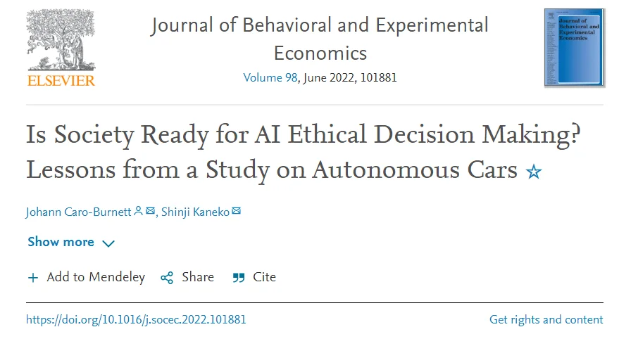 近日,一個來自廣島大學(xué)的研究小組探究了人類對引入人工智能決策的反應(yīng)。具體來說,他們通過研究人類與自動駕駛汽車的互動,探討了一個問題:“社會準(zhǔn)備好接受人工智能道德決策了嗎?”